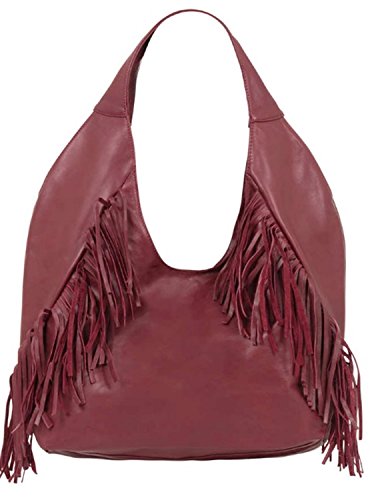Best Seller! Handbag Bliss Dark Red/Plum Italian Leather Wide Handle Tassel Slouch Shoulder Bag Handbag (New Style) Review